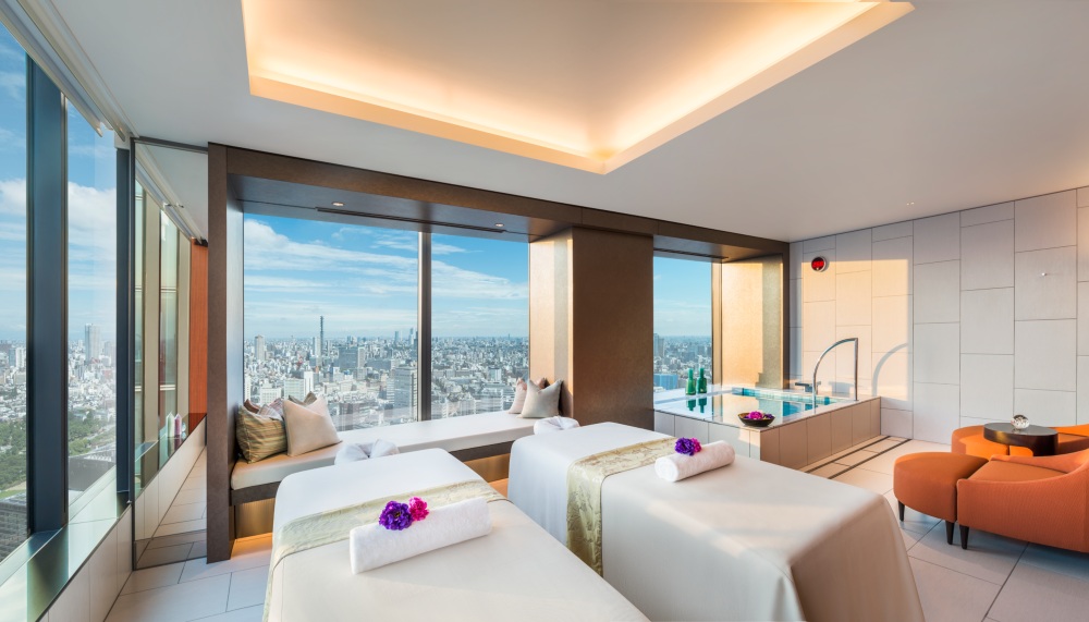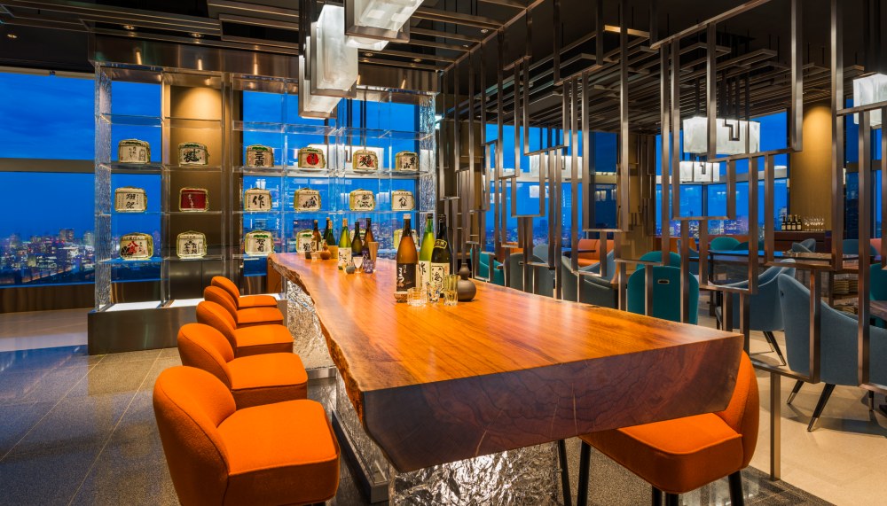 The all-day dining venue, Oasis Garden, enchants with its chic glen in the sky concept of steel tree trunks and framed, earthy mossy foliage. Meanwhile at the Japanese restaurant Souten, the crystalline ice motif is realised in objets d’art hung from the ceiling. Most impressive is the Levita sky bar and with its jaw-dropping city views framed by floor-to-ceiling glass waterfall installation by artist Mari Noguchi that glow luminescent at night.