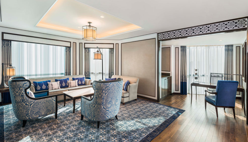 As a respectful nod to Princess Valaya’s legacy and the location’s storied background, the 374-room Athenee Hotel bears classic elements throughout, recreating through the use of design tropes from chess and books – favoured pastimes of the princess – a style of living from a bygone era. Expect palatial interiors in the Vimarn Siam suite, a modern distillation of King Chulalongkorn (Rama V)’s summer abode. At 190 square metres, the two-bedroom suite recalls the 19th century, highlighting murals, carvings, and materials popular during that era. The space also features a dining table that comfortably seats 10.