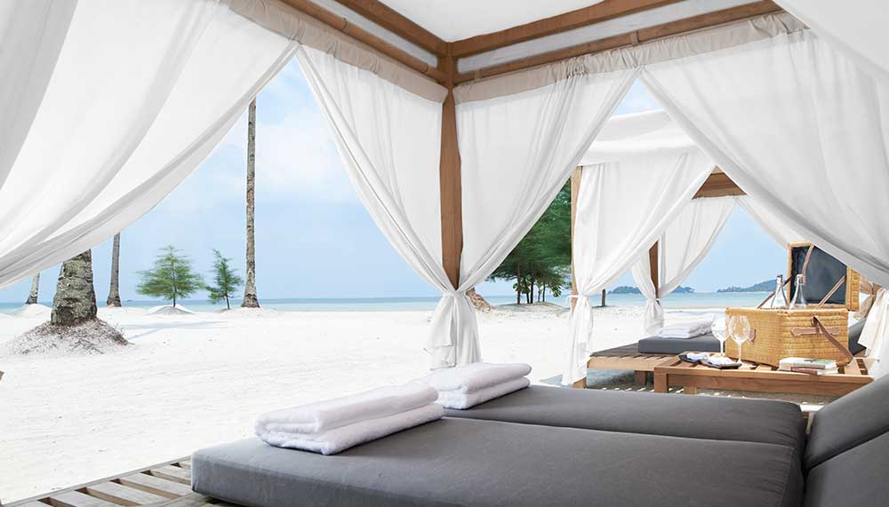 And finally, the glamour. Privacy may be an emphasis – it would be easy to remain ensconced in the comfortable cocoons and staff seem to be able to appear and disappear at will – but The Sanchaya has an atmosphere that invites surveillance. You’ll find yourself compelled to walk the length of the pristine beach, lounge under palm trees and swim laps in the spectacular 50m infinity pool. Or watch others wander about in the same bliss while sipping on a cocktail – mixed tableside for you, of course. Meals incorporate fine examples of European and Asian cuisine, and can be taken at the refined Dining Room or the more resort-like Tasanee Grill. Then there is The Sanchaya Spa – an oasis of calm that promises, and delivers on, rejuvenation. And if you choose to venture beyond The Sanchaya, Bintan has plenty of golf and water sports options as well.