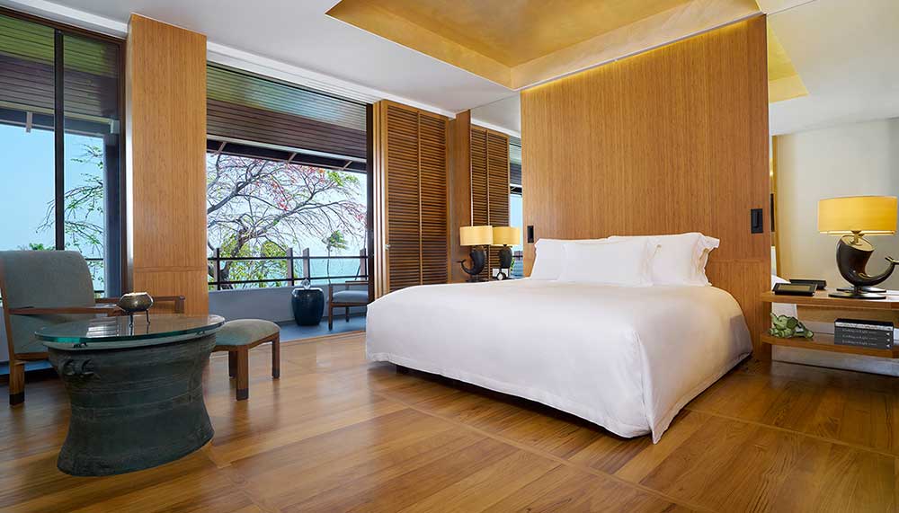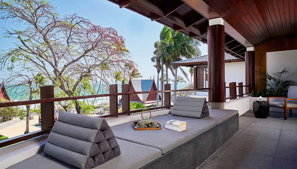 Custom hand-woven silks from Thailand’s world-renowned brand Jim Thompson grace the interiors, as do contemporary Thai furnishings designed by American architect Ed Tuttle and his team at Designrealization Siam. Hidden mood and sensor lighting systems help save electricity while enhancing the resort’s Thai tranquillity, and new outdoor sitting areas and floor-to-ceiling windows invite guests to sip detoxifying lemongrass tea while appreciating the Gulf of Siam and Chiva-Som’s own waterfalls, lakes, and tropical gardens.