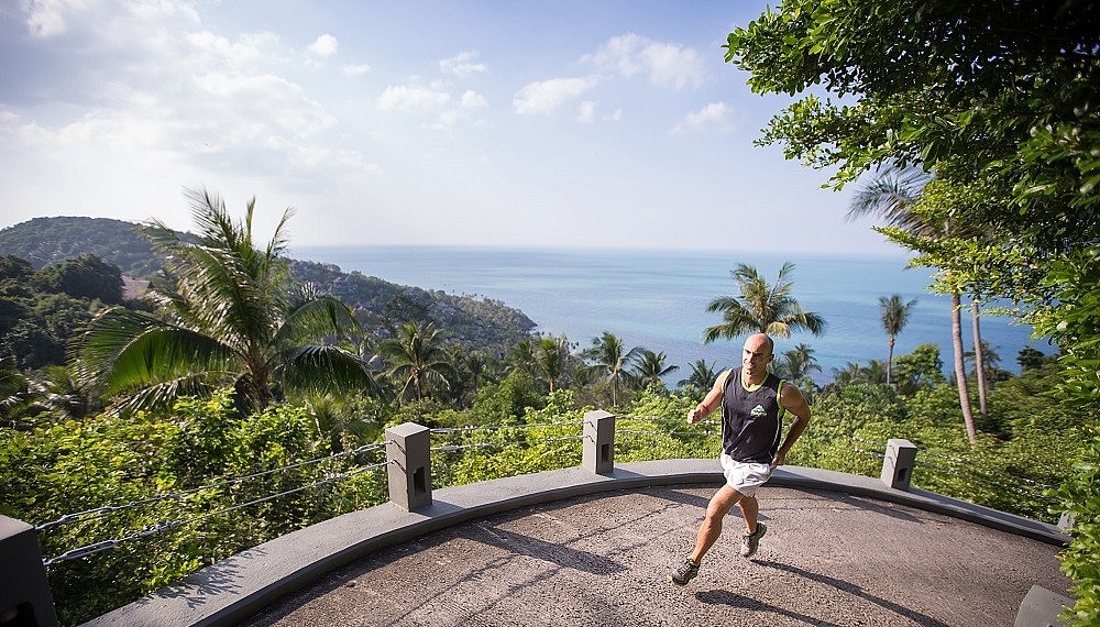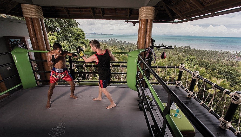 The resort, occupying one entire side of the hill, may prove a challenge to those who prefer navigating by foot. Arteries of steep, narrow paths connect the 60 villas (and 11 private residences), twisting, turning and undulating among landscaped foliage and 856 coconut trees left over from the days when the site was a coconut farm. Unless a breathless cardio challenge sounds welcome, buggies will ferry guests from point to point – from tennis courts to all-day dining at hillside Koh Tai – without a sweat. A quick welcome orientation on wheels unveils tucked away recreation corners – from the Muay Thai boxing ring at the apex of the hill to yoga salas dotted around – before guests are introduced properly to their villas.