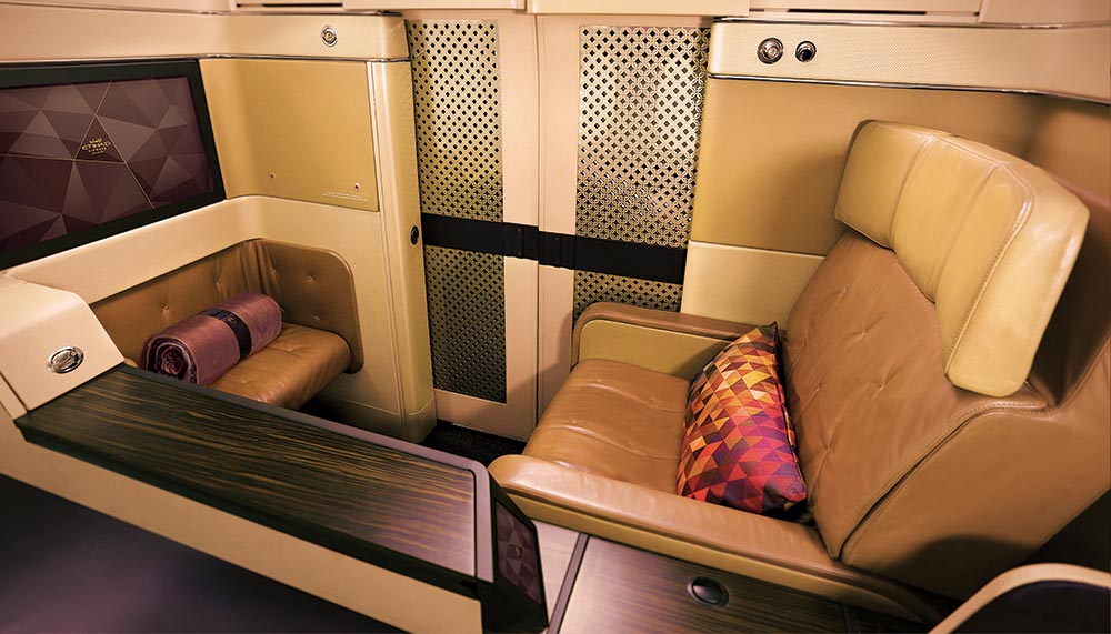 Abu Dhabi’s national carrier has a truly unique offering – The Residences. With an incredible three rooms in every suite, it has understandably claimed a genuine world first. In 11.6sqm you get a bedroom, lounge and even a personal bathroom with shower. The fit-out looks more like the interior of a hotel or superyacht – or, indeed, a private jet.