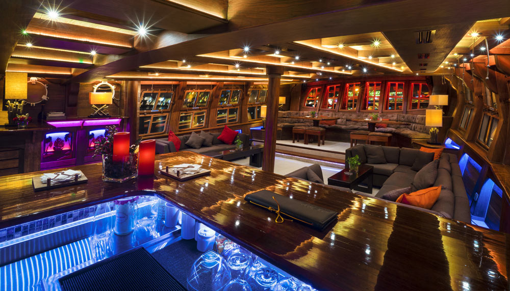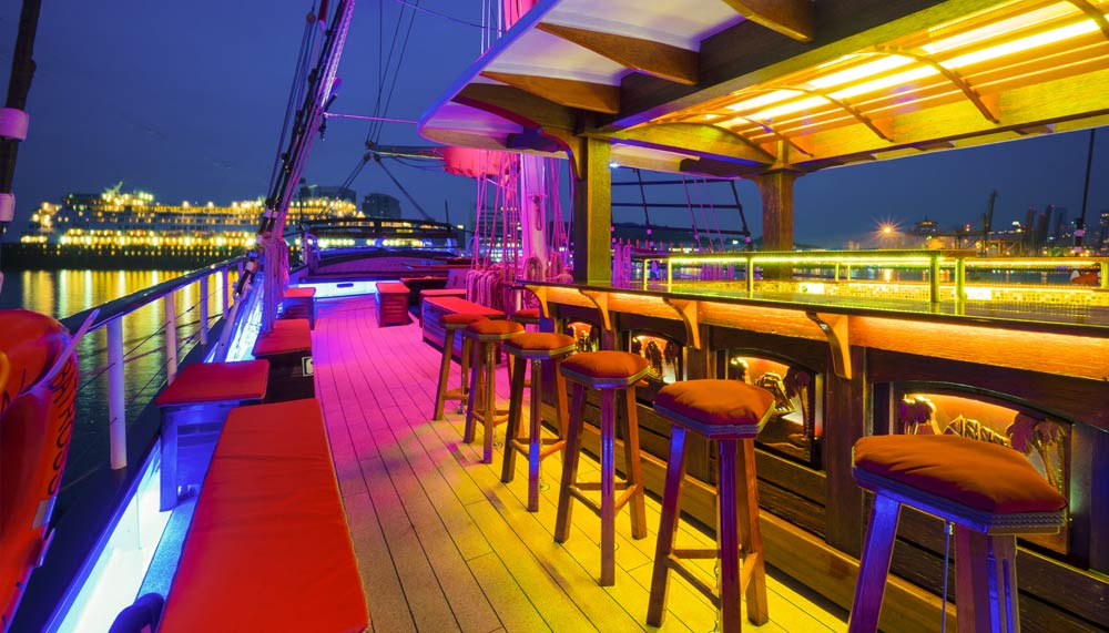 Fridays are reserved for social events, where groups of friends gather for a night of mingling under the stars. The sunset cruises on Saturdays make a great night out for couples, who’ll enjoy a romantic dinner complete with live entertainment. Sundays are best kept for families. The Sunday Roast begins dockside at 11am, and serves mouthwatering traditional British fare.