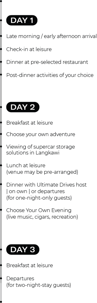 Purchase and fulfilment of the Ultimate Drives Langkawi experience, managed by Robb Report malaysia, is subject to best availability and includes blackout dates.